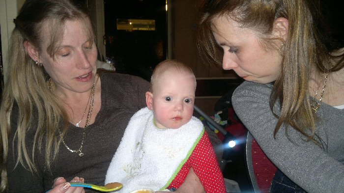 Ik ging maar heen en weer in de kinderstoel. Vond het erg gezellig. |