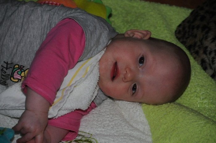"Hallo, Oma ik lig hier". Met het maken van geluiden hoop ik op aandacht. |