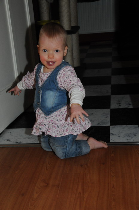 De volgende dag wat rond lopen in huis. De muren zijn goede helpers. |