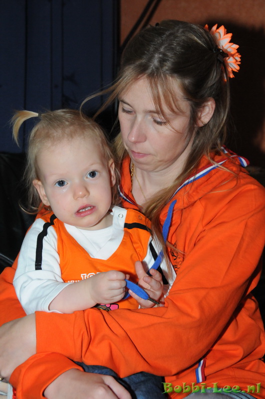 Wat is dit gezellig. Lekker gek doen met vele andere oranje fans. |