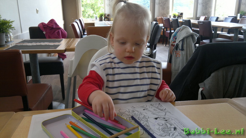 In de avond eten in een restaurant. Tussen het eten door, waren de potloden een leuk speelgoed. |