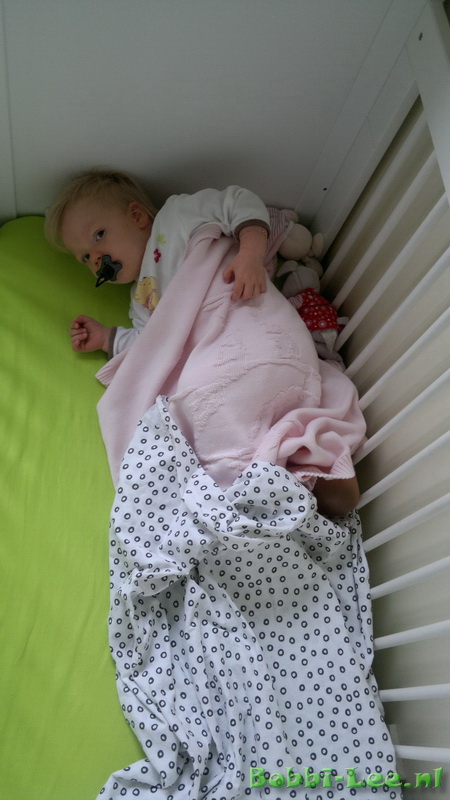 Zo lag ze in bed. Moest even langzaam op gang komen. |