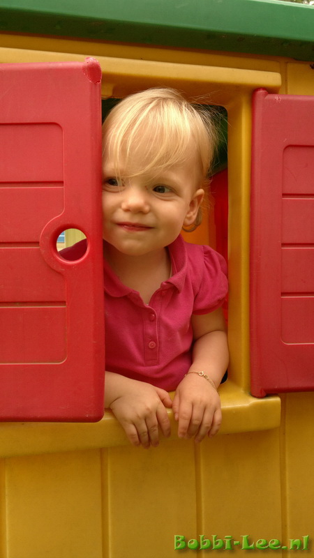 Al de gehele dag in de tuin aan het spelen. Het was nu rond 18.00 in de avond en nog steeds bad pret. |