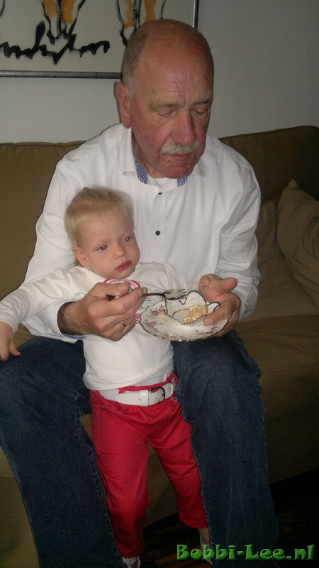 Eerst bij Opa Cees op de schouder alles over zien. |