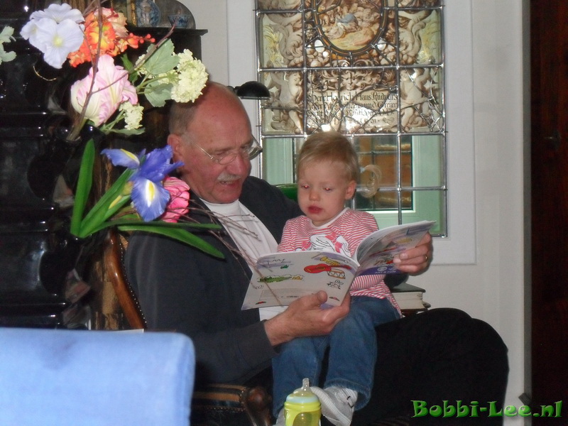 In de namiddag samen met Opa wat lezen. Ik in mijn stoel en Opa in die van hem. |