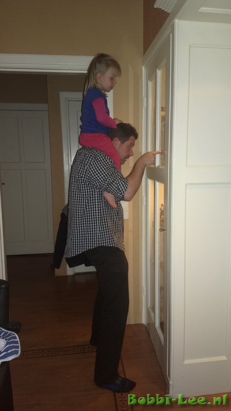 Dag 1 zat erop. Samen met Pappa thuis voor de vitrine staan. |