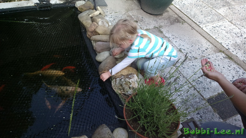 Ook in de tuin van kennissen blijven de vissen de aandacht trekken. |