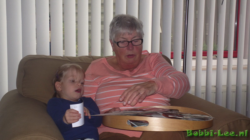 Op bezoek bij Oma. Allemaal oude fotos samen aan het bekijken. |