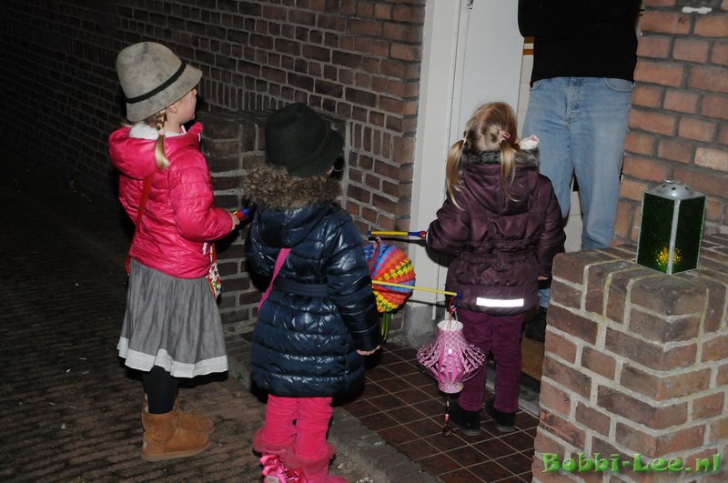 11/11/13. Sint Maarten. Bobbi-Lee doet dit jaar voor het eerst mee. Samen met de 2 buurmeisjes bij Opa. Met z'n 3tjes op stap in de straat bij Opa. Langs de deuren en dan zingen. Lampionnetje, lampionnetje, etc etc. |