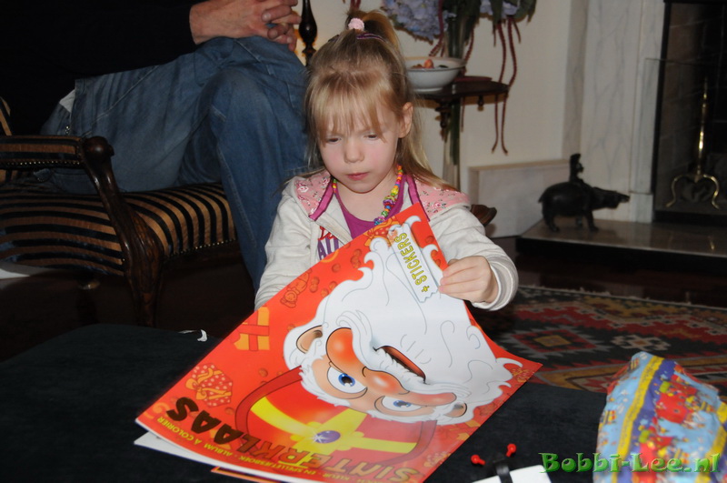 De Sint loopt door, zonder een hand te hebben gegeven aan Bobbi-Lee. Een pruil lipje komt te voorschijn. ( zie haar gezicht ) Opa merkte dat en liep gelijk achter Sinterklaas aan. Met als gevolg..... |